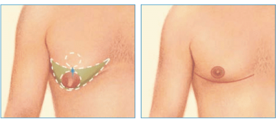 U niektórych mężczyzn najlepsze efekty można osiągnąć dzięki połączeniu liposukcji i wycięcia chirurgicznego. Zazwyczaj taka procedura rozpoczyna się od chirurgicznego wycięcia tkanki i skóry, a następnie za pomocą liposukcji usuwa się niechciane złogi tłuszczu i rzeźbi pożądany kształt klatki piersiowej. Te same nacięcia są wykorzystywane do obu procedur, więc nie ma ryzyka dodatkowych blizn.
